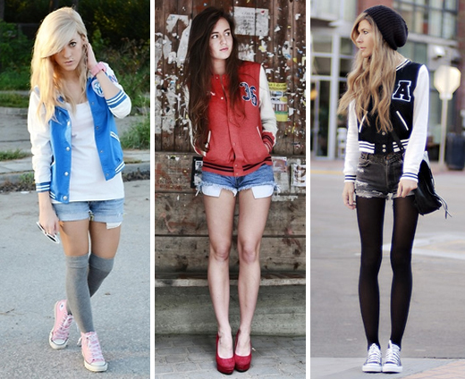São as jaquetas Varsity, também conhecidas como jaquetas esportivas, onde a tradição era os garotos que jogavam futbool americano usavam com as iniciais da escola ou time para fazer a divulgação e essa moda se expandiu até que foram confeccionados modelos femininos styles.